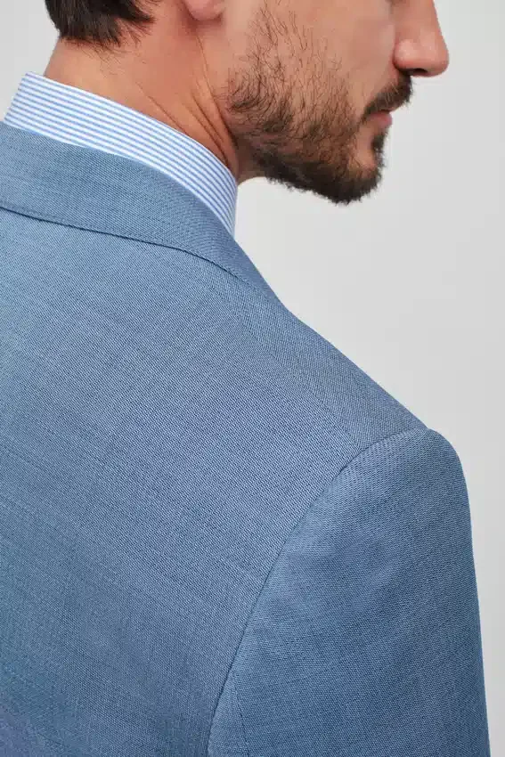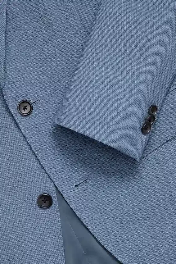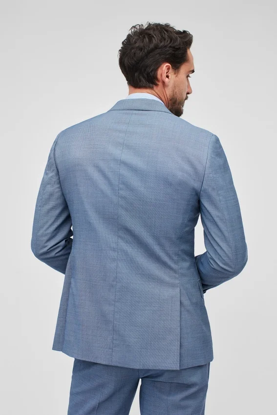 Struttura leggera | Resistente alle pieghe | Repellente alle macchie e ai liquidi | Elastico per un maggiore comfort | Tasche con patta | Doppio spacco | 2 bottoni | Revers a cresta | Tasche interne a filetto