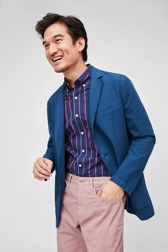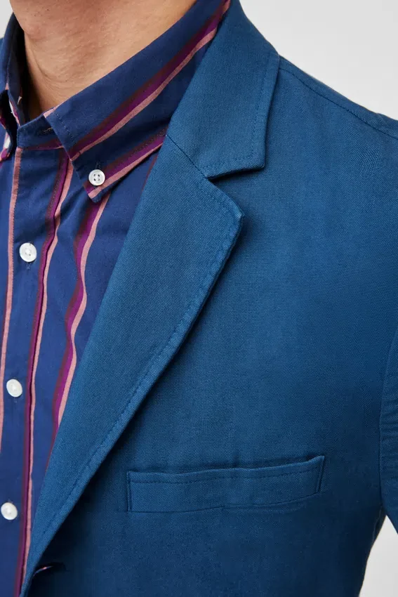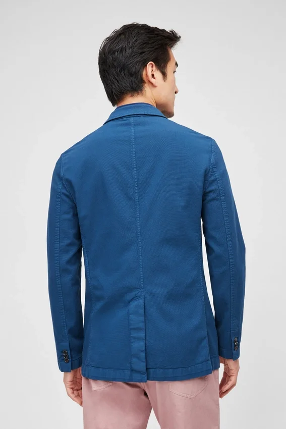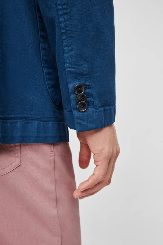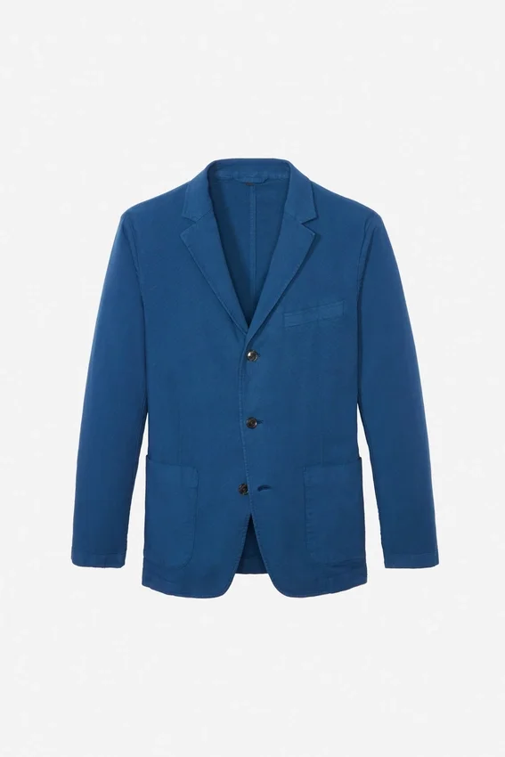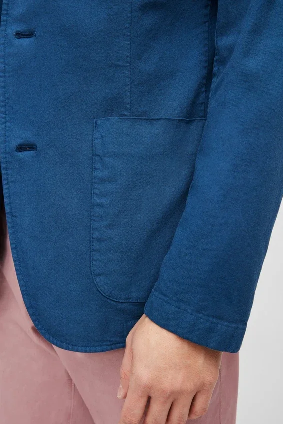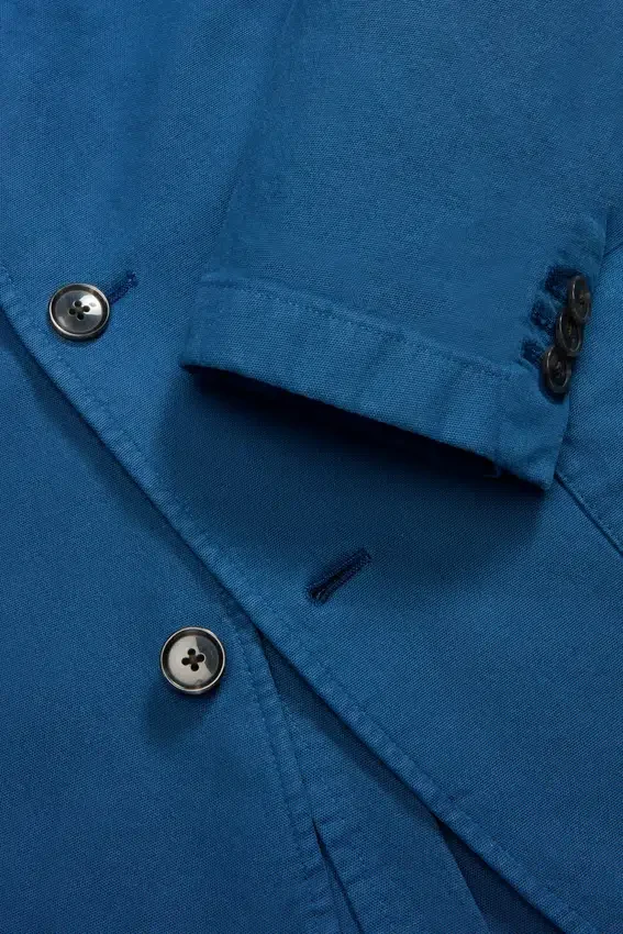 Tinto in capo per una maggiore morbidezza | Revers da 8,25 cm | Tasche applicate | Chiusura frontale a tre bottoni, ma può essere arrotolato per un look a due bottoni | Sfoderato | Bottoni funzionali ai polsini | Spacco singolo | Tasche applicate interne | Passante per appendere
