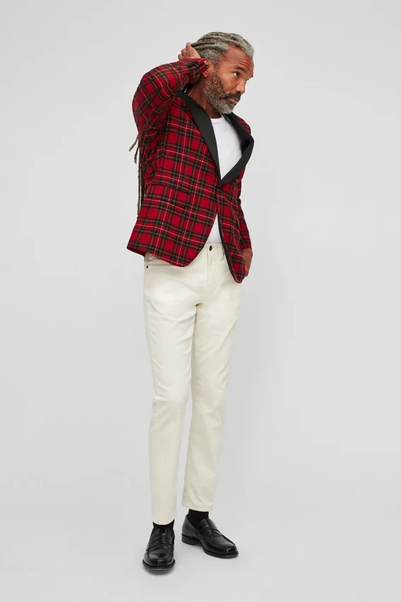 Caratteristiche della giacca: Revers a scialle nero largo 6,35 cm | Completamente foderata | Tasche con patta | Monospalla a 2 bottoni | Bottoni non funzionali ai polsini | Doppio spacco | Tasche interne a filetto