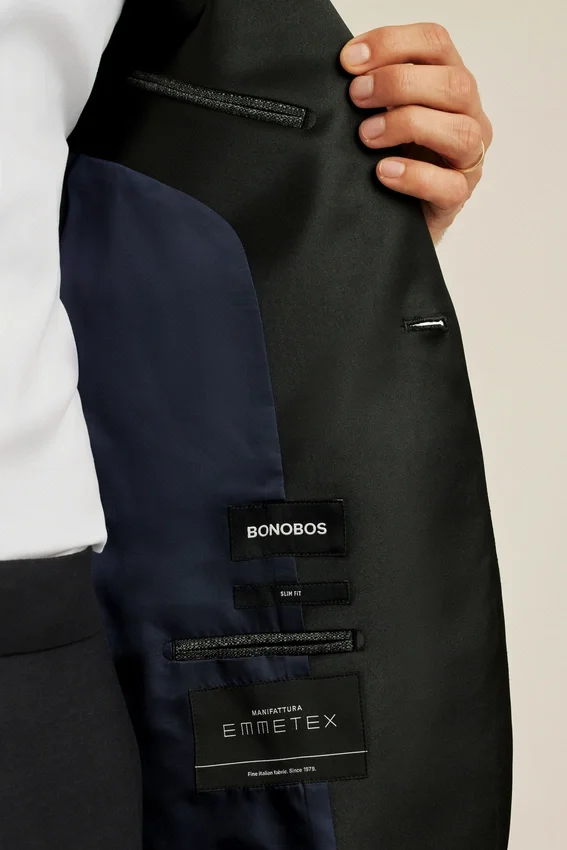 Il modello è alto 188 cm e indossa una 40R in versione Slim Fit