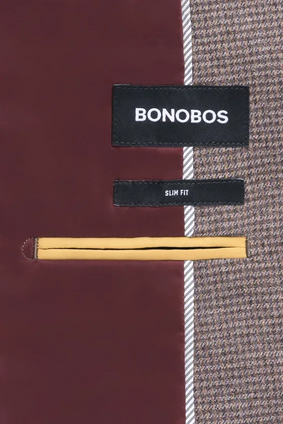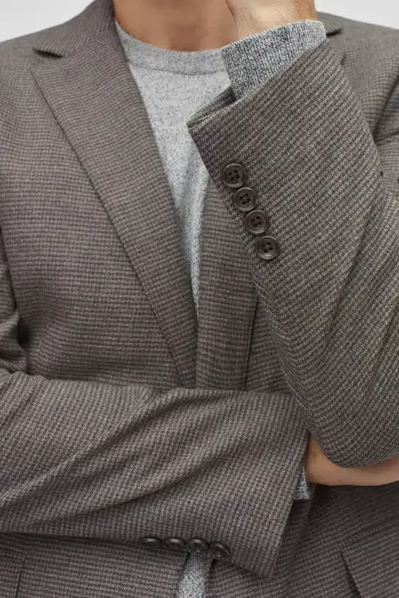 Il modello è alto 188 cm, ha un torace di 102 cm e indossa una 40R in Slim Fit