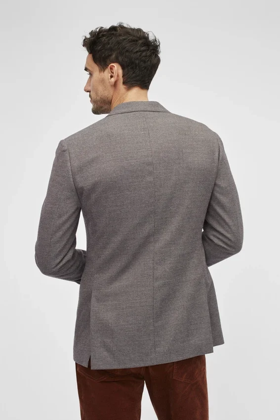 Caratteristiche della giacca: Revers alla scozzese | Tasche con patta | Monopetto a 2 bottoni | Interno completamente foderato | Tasche interne a filetto | Bottoni non funzionali ai polsini | Feltro sotto il colletto | Doppio spacco | Struttura leggera