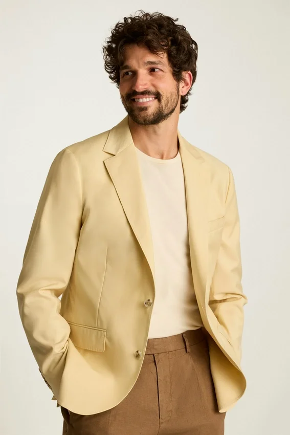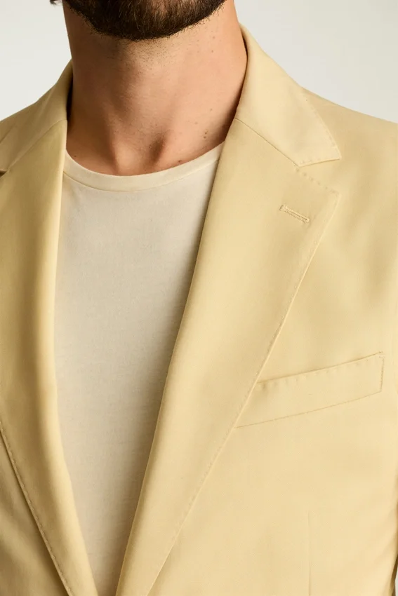 Tessuto Reda | Sfoderato con bordino alle cuciture | Bottoni non funzionali ai polsini | Maniche foderate | Doppio spacco | Tasche interne | Passante