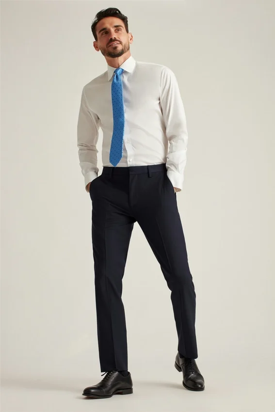 Il modello è alto 188 cm, ha un girovita di 81 cm e indossa un pantalone da completo Slim Fit con girovita 81 cm. I pantaloni da completo sono senza orlo e hanno un cavallo di 94 cm.