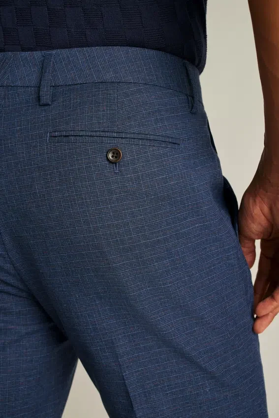 I pantaloni presentano una classica chiusura con gancio e barra e tasche posteriori con bottoni.