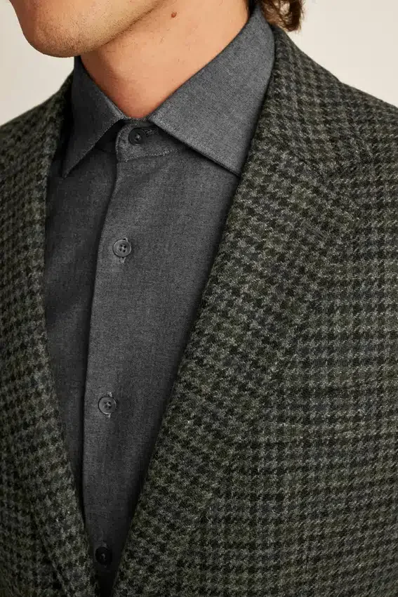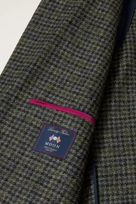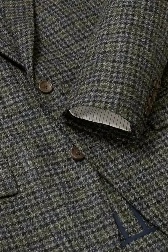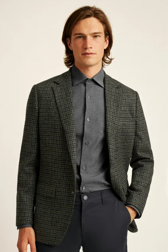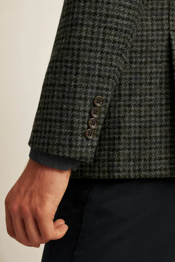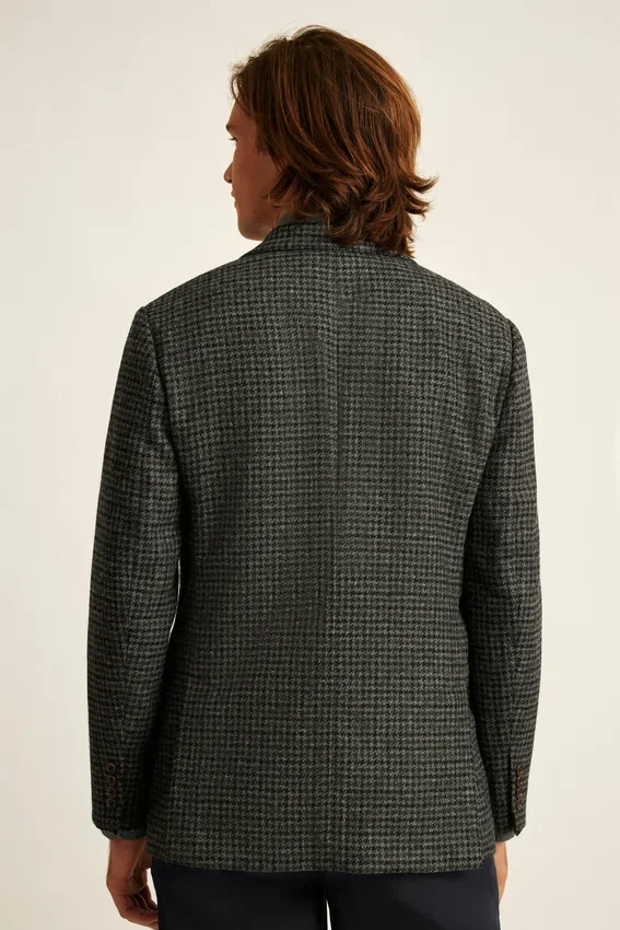 Tessuto Abraham Moon | Revers a cresta | Tasche con patta | Monopetto a 2 bottoni | Interno sfoderato con bordino sulle cuciture | Fodera sulle maniche | Bottoni non funzionali sui polsini | Doppio spacco | Struttura leggera | Tasche interne e passante