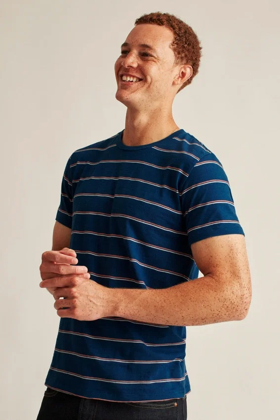 Tessuto jersey morbido e leggero con strisce tinte in filo per un look casual