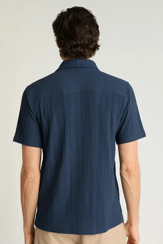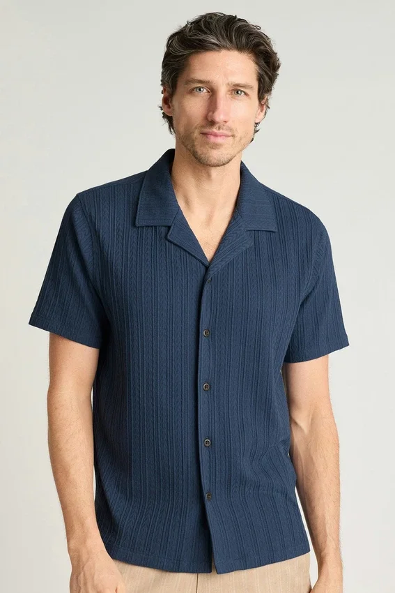 Morbido tessuto misto cotone | Righe verticali testurizzate | Chiusura con bottoni | Può essere indossata chiusa come camicia o aperta come capo da sovrapporre