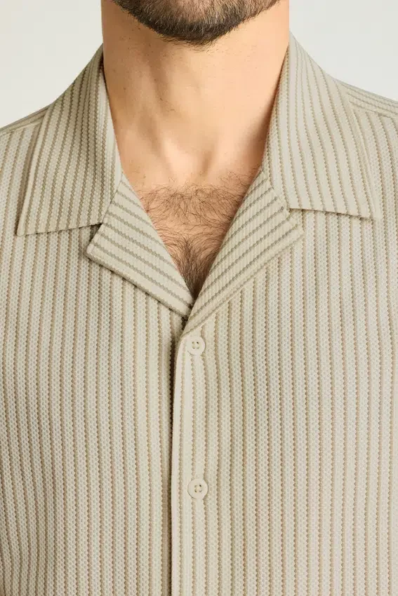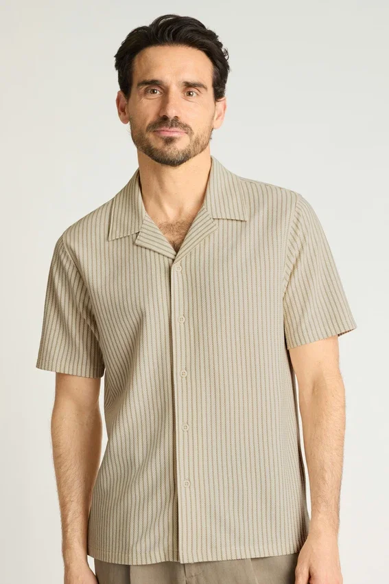 Tessuto morbido in misto cotone | Strisce verticali che valorizzano la figura | Chiusura con bottoni | Può essere indossata chiusa come camicia o aperta come capo da sovrapporre