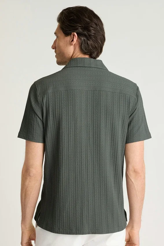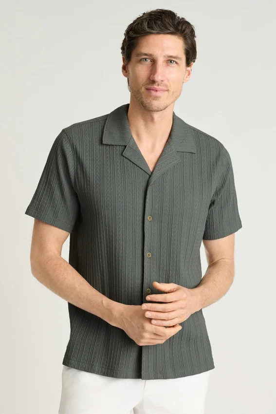 Morbido tessuto misto cotone | Righe verticali testurizzate | Chiusura con bottoni | Può essere indossata chiusa come camicia o aperta come capo da sovrapporre