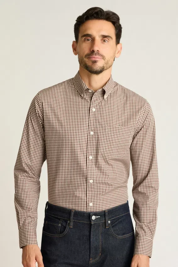 Colletto button-down | Tasca sul petto | Polsini con doppio bottone | Tessuto elasticizzato confortevole