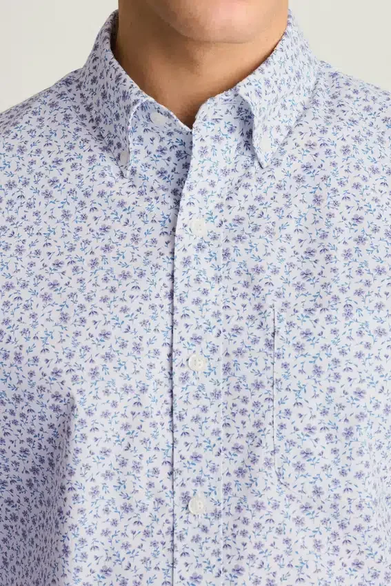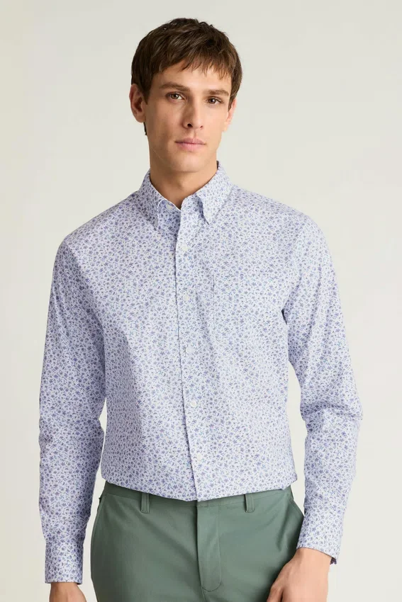 Colletto button-down | Tasca sul petto | Polsini con doppio bottone | Tessuto elasticizzato confortevole