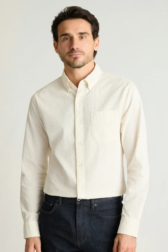 Colletto button-down | Tasca sul petto | Polsini con doppio bottone | Tessuto elasticizzato confortevole