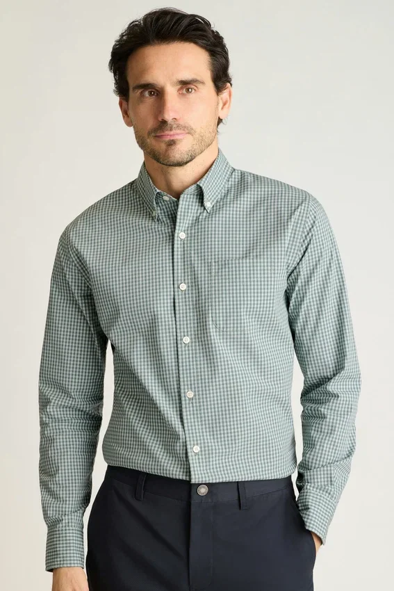 Colletto button-down | Tasca sul petto | Polsini con doppio bottone | Tessuto elasticizzato confortevole