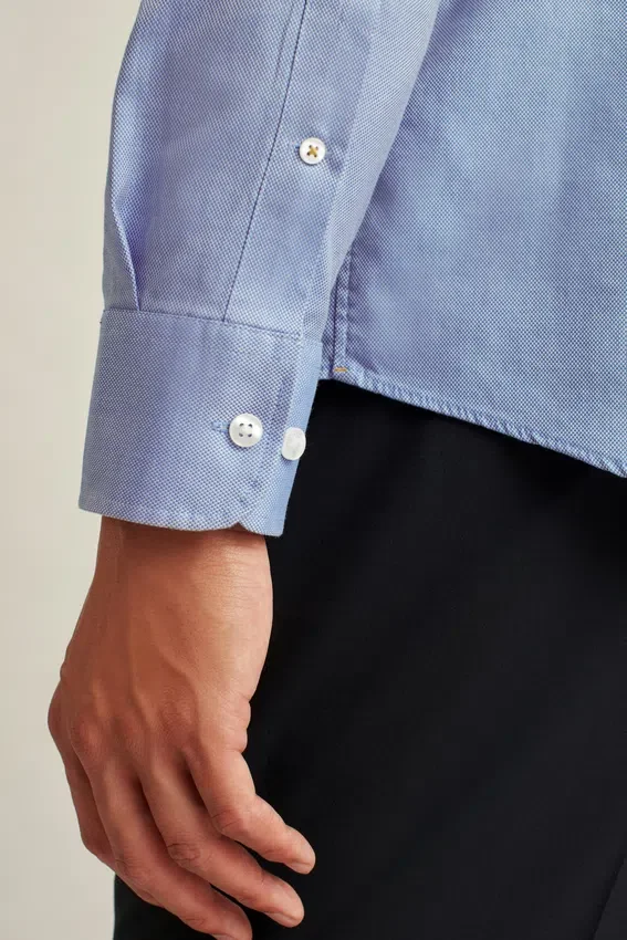 Colletto a punta modificato | Polsini a doppio bottone | Abbottonatura alla francese | Stecche per colletto “Stay Handsome”