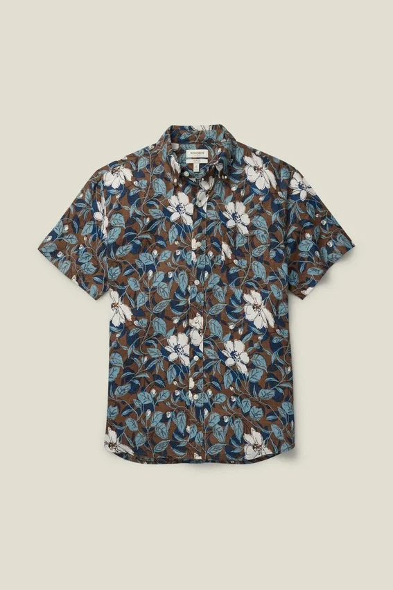 Camicia da uomo a maniche corte con bottoni di Bonobos | Stile Montauk raffinato