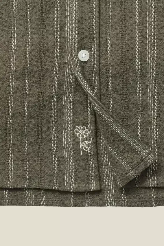 Tasca sul petto | Orlo leggermente arrotondato | Ricamo floreale Bonobos sotto l’abbottonatura