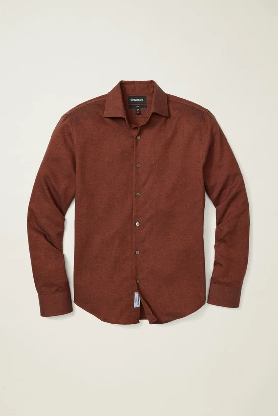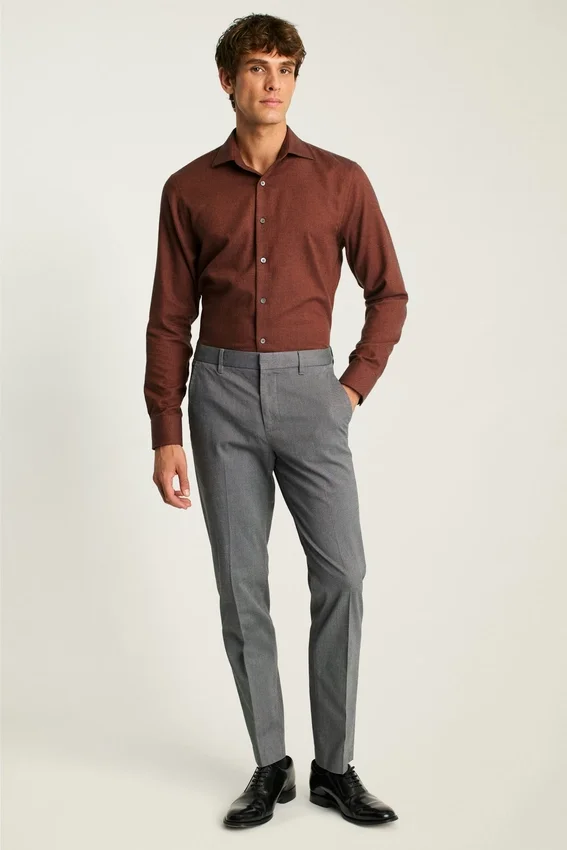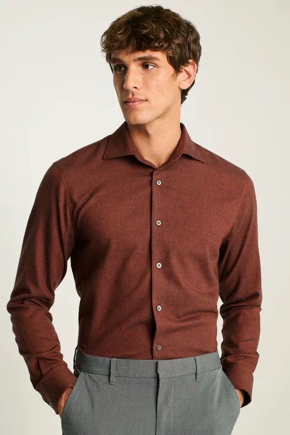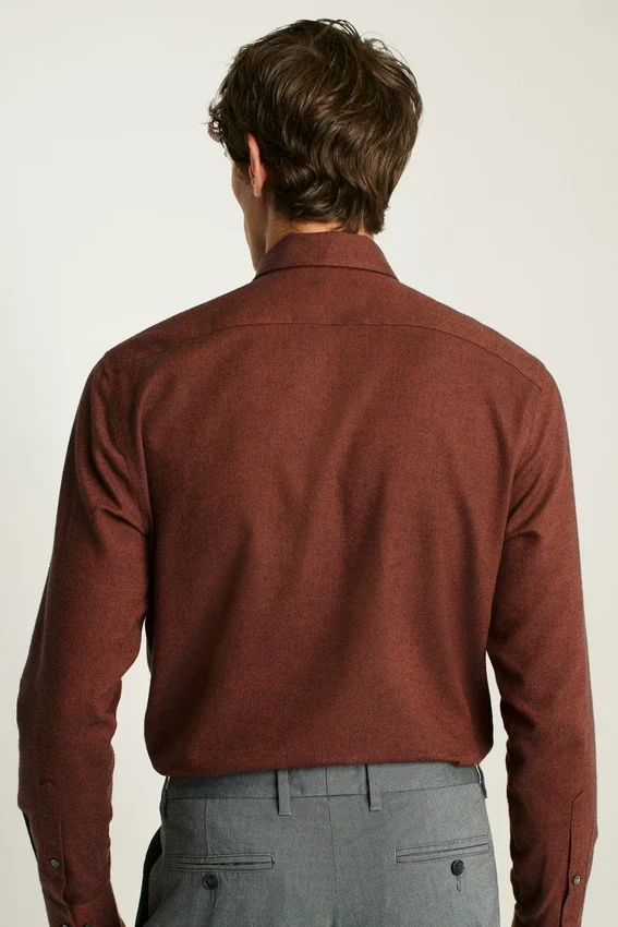 Tessuto misto merino spazzolato di Somelos | Abbottonatura alla francese | Stecche da colletto Bonobos personalizzate con motivo floreale | Polsini a doppio bottone | Bottoni in vera conchiglia