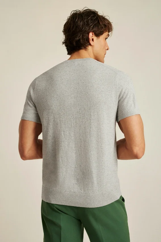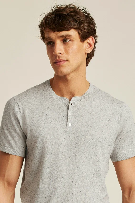 Camicia Henley in cotone e canapa a maniche corte con tre bottoni