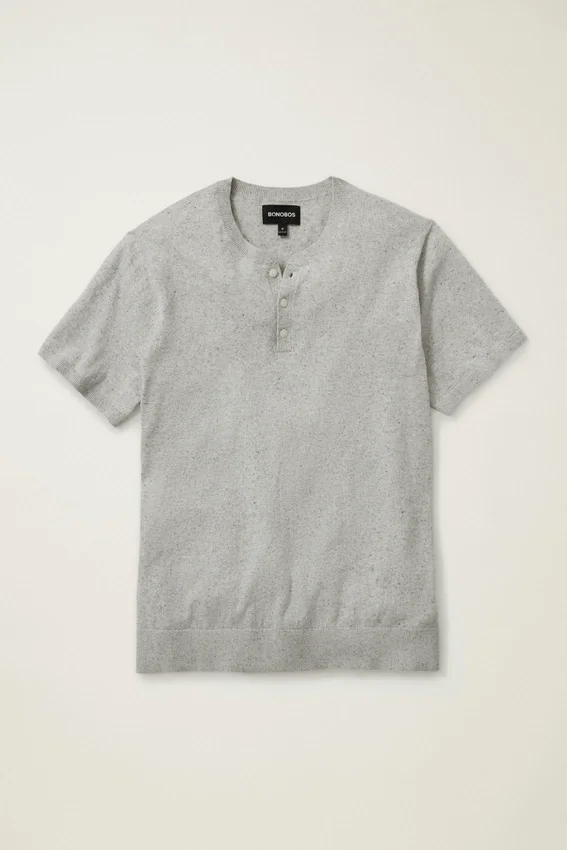 Acquista la maglietta Henley in cotone e canapa a maniche corte con tre bottoni, traspirante, resistente e confortevole, di Bonobos in vari colori e modelli.