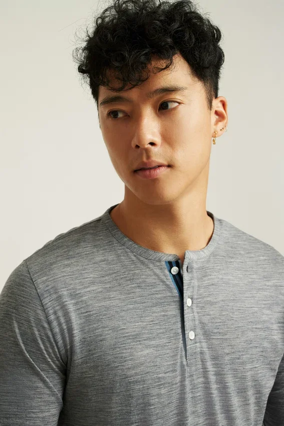 Camicia Henley in lana merino morbida e traspirante