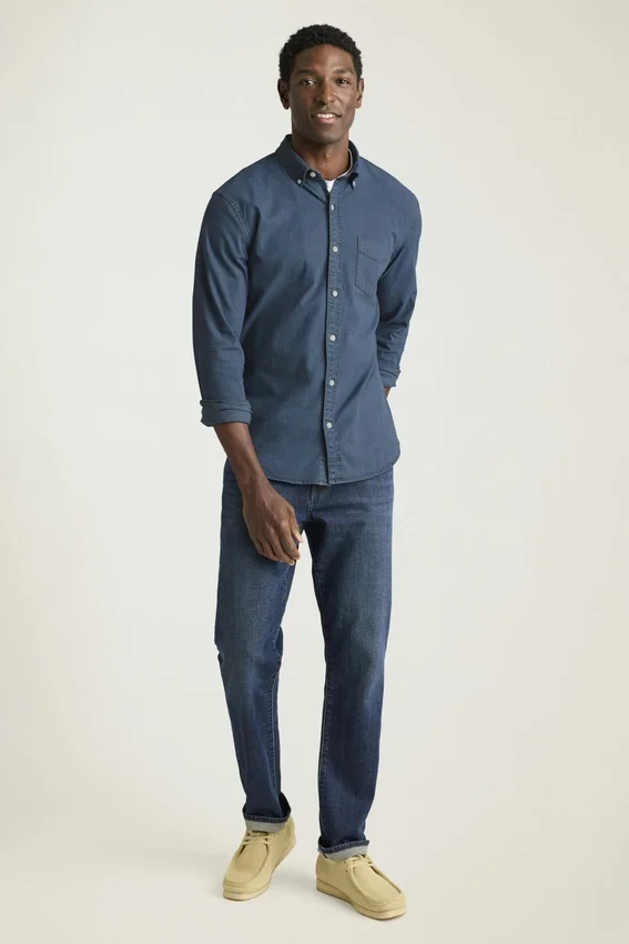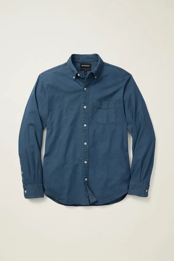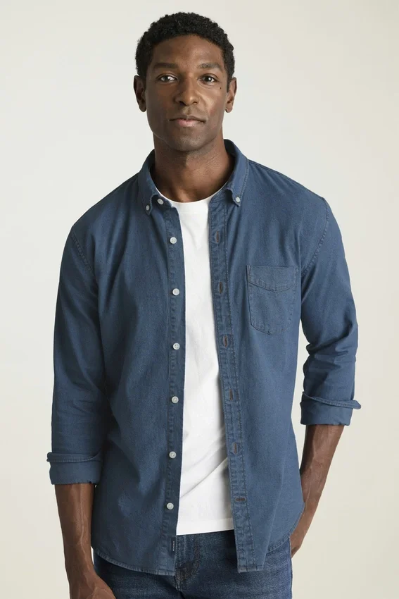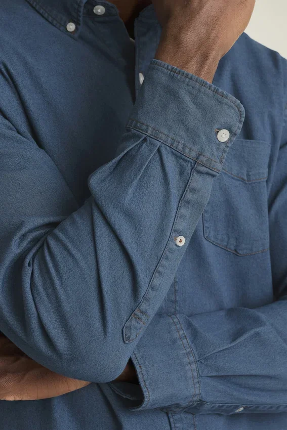 Colletto button-down | Tasca sul petto | Tessuto denim elasticizzato