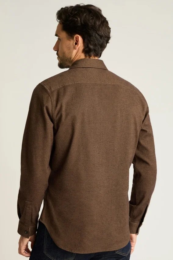 Tessuto in flanella elasticizzata morbida al tatto | Due tasche sul petto | Tessuto grigio melange posizionato sul carré posteriore interno e sull’abbottonatura interna