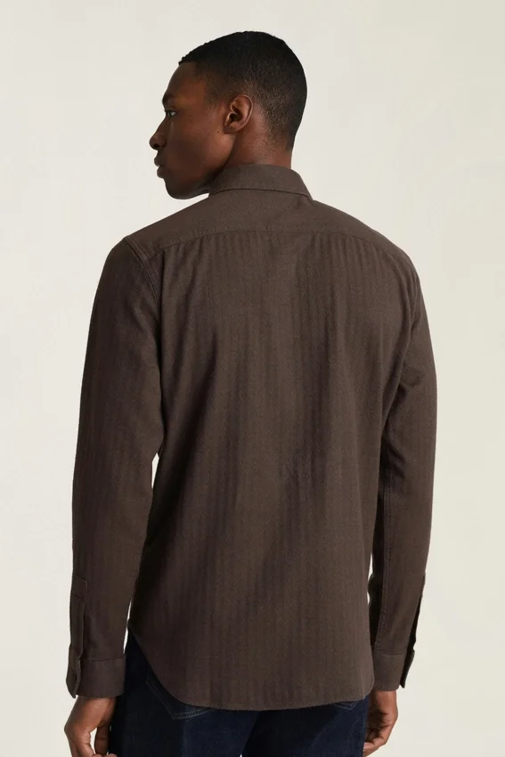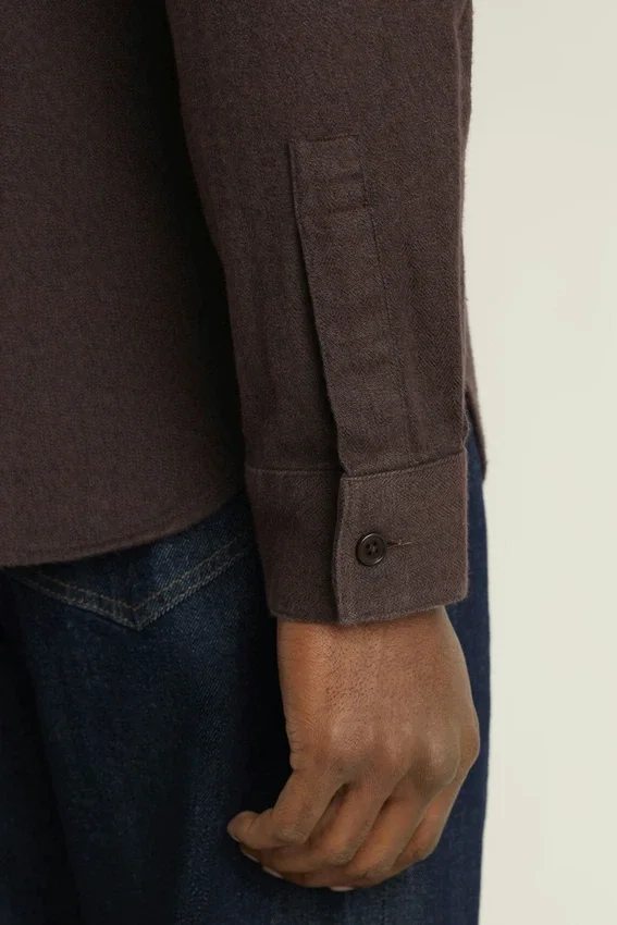 Tessuto in flanella elasticizzata morbida al tatto | Due tasche sul petto | Tessuto grigio melange posizionato sul carré posteriore interno e sull’abbottonatura interna