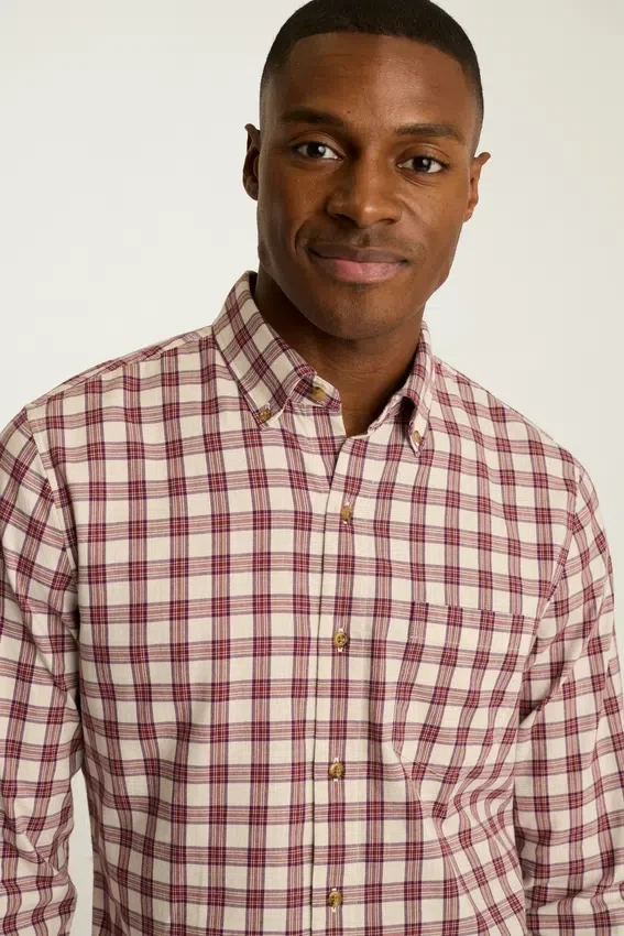 Con un tessuto più leggero ma altrettanto confortevole, puoi indossare questa camicia di flanella durante le temperature di transizione.