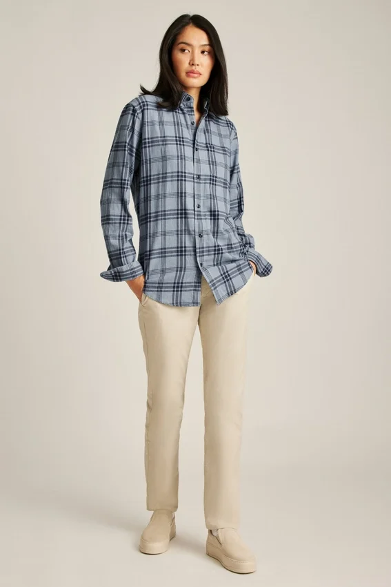 Con un tessuto più leggero ma altrettanto confortevole, puoi indossare questa camicia di flanella durante le temperature di transizione.