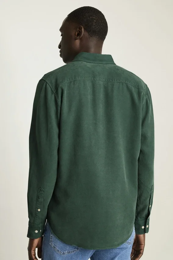 Scopri il comfort della nostra camicia in Tencel tinta in capo. Questa camicia button-down traspirante e morbida sembra già indossata fin dal primo momento, per un comfort che dura tutto il giorno.
