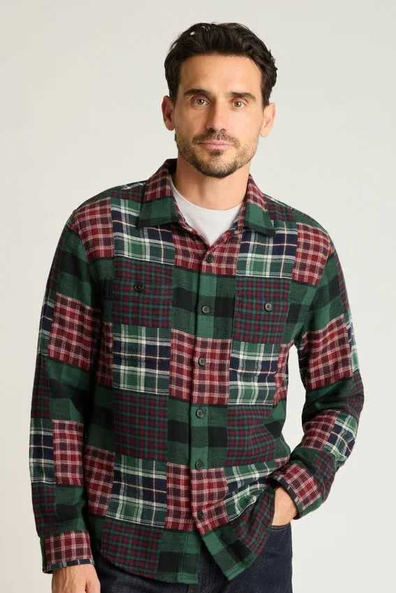 La camicia patchwork Revelry di Bonobos unisce il morbido cotone a doppio tessuto a uno stile stagionale audace. Una camicia patchwork da uomo realizzata per offrire calore, comfort e un tocco festoso.