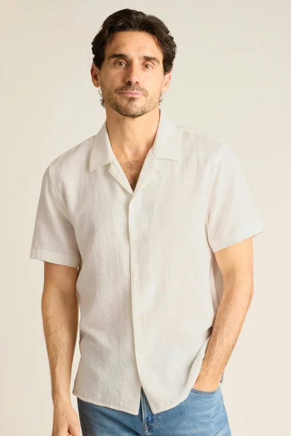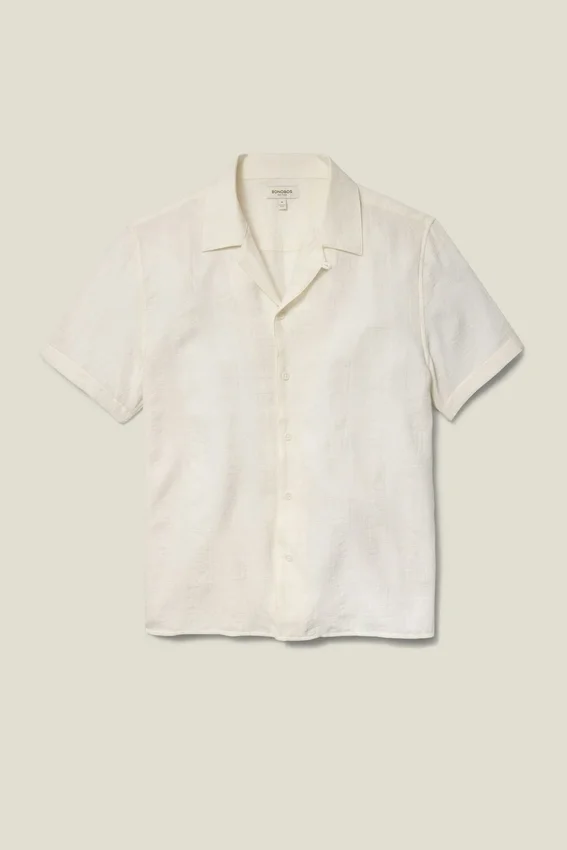 Retro, rilassato e affascinante con stampe dal gusto vacanziero. Praticamente una festa in cabana sotto forma di camicia.
