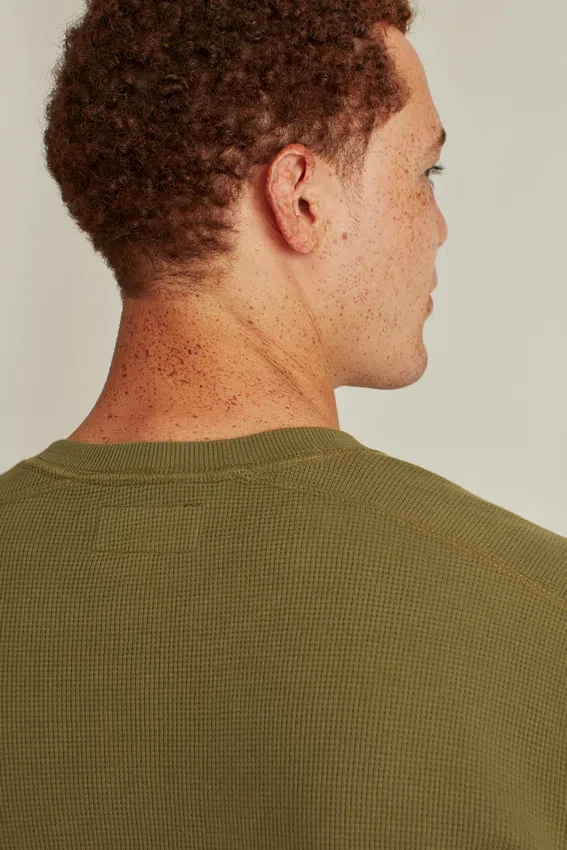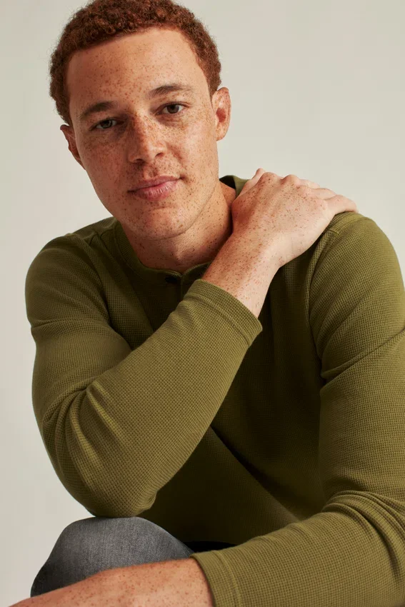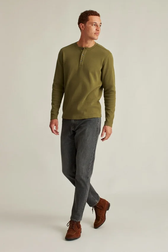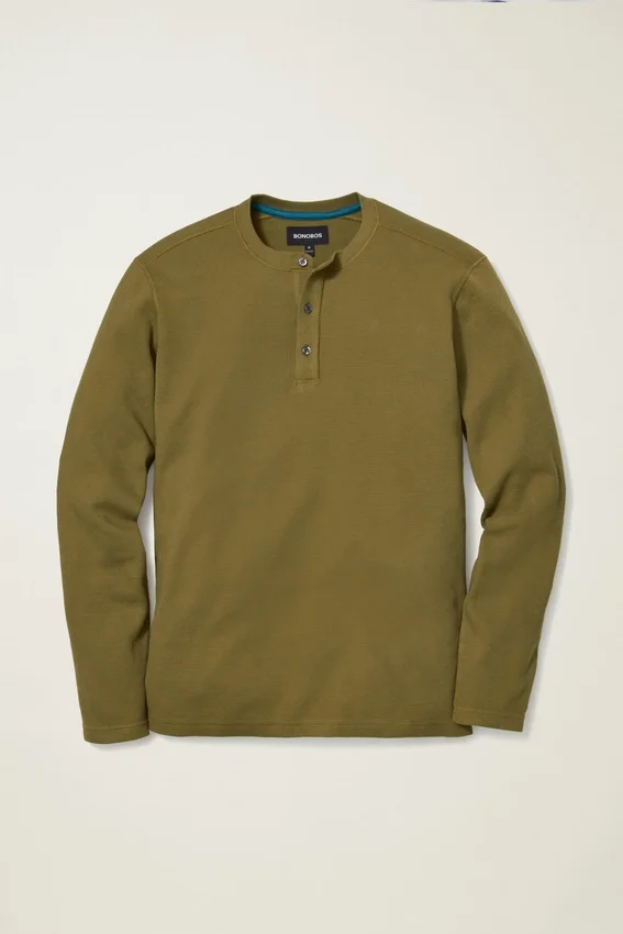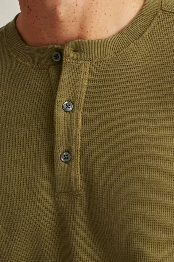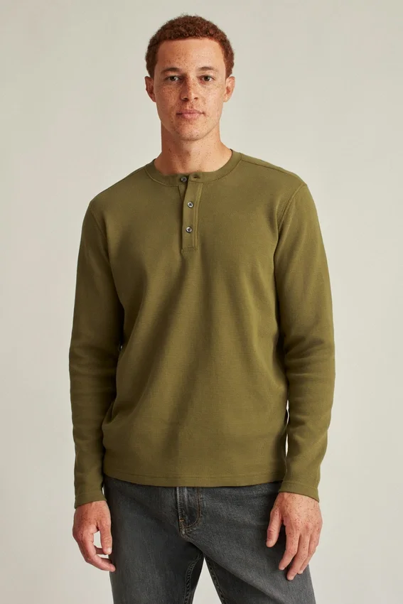 Per affrontare tutte le stagioni, questa Henley in cotone leggero offre sia texture che morbidezza al tatto.