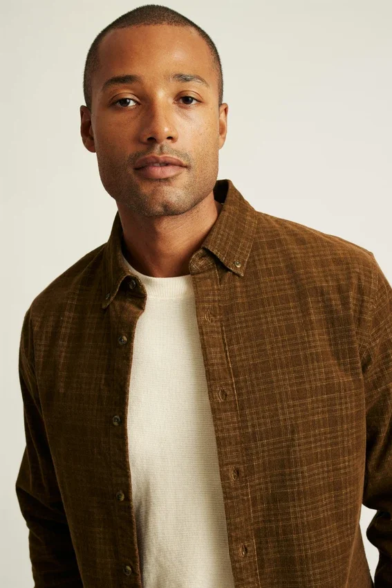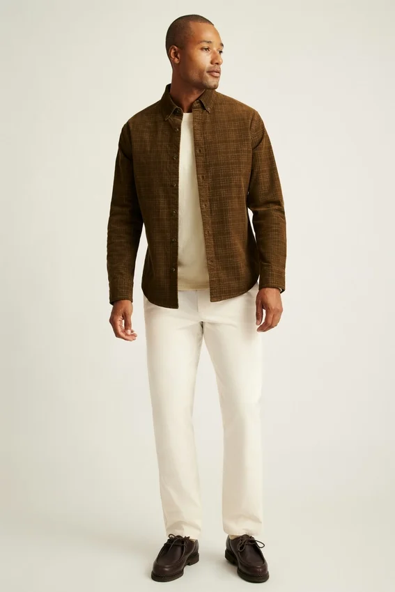 Velluto a coste morbido con un tocco di elasticità confortevole. Abbastanza caldo da indossare sopra una maglietta Henley o una t-shirt.