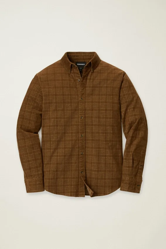 Colletto button-down | Tasca sul petto | Morbido tessuto in velluto a coste elasticizzato