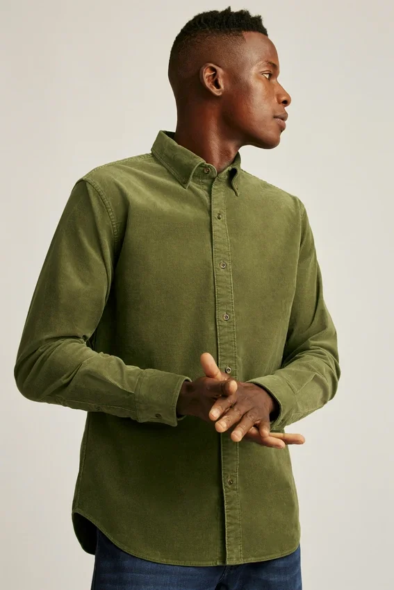 Colletto button-down | Tasca sul petto | Morbido tessuto in velluto a coste elasticizzato