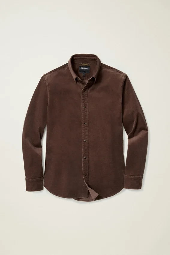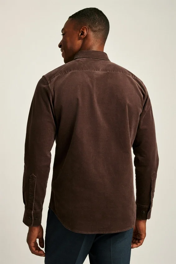 Colletto button-down | Tasca sul petto | Morbido tessuto in velluto a coste elasticizzato