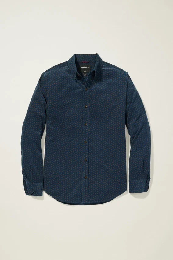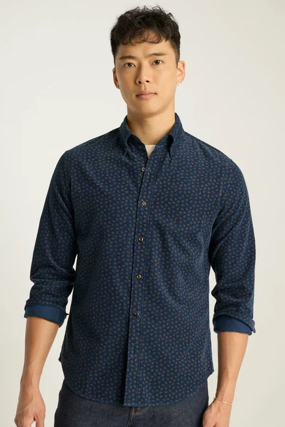 Colletto button-down | Tasca sul petto | Morbido tessuto in velluto a coste elasticizzato