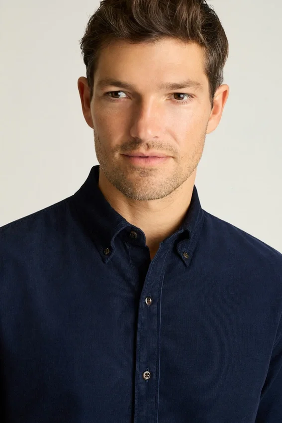 Colletto button-down | Tasca sul petto | Morbido tessuto in velluto a coste elasticizzato