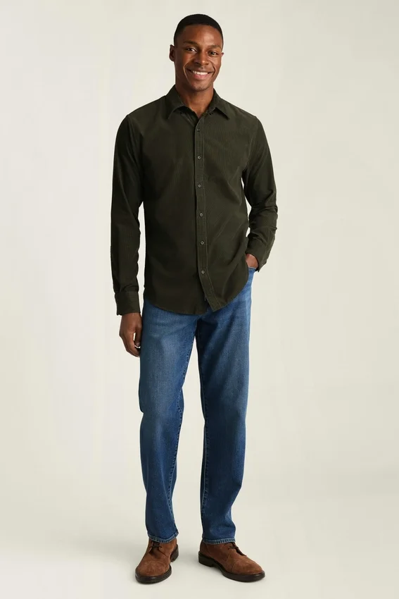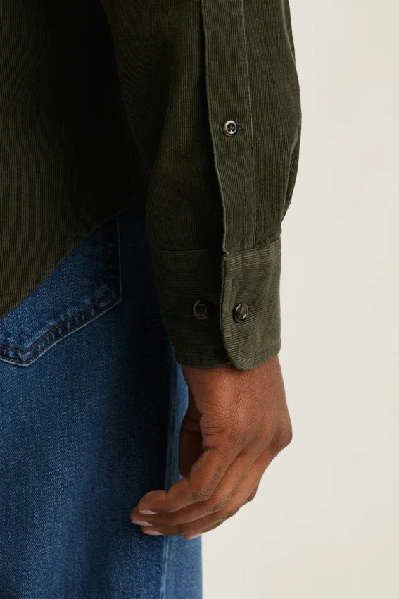 Colletto button-down | Tasca sul petto | Morbido tessuto in velluto a coste elasticizzato