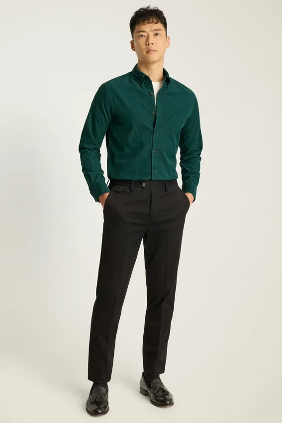 Colletto button-down | Tasca sul petto | Morbido tessuto in velluto a coste elasticizzato