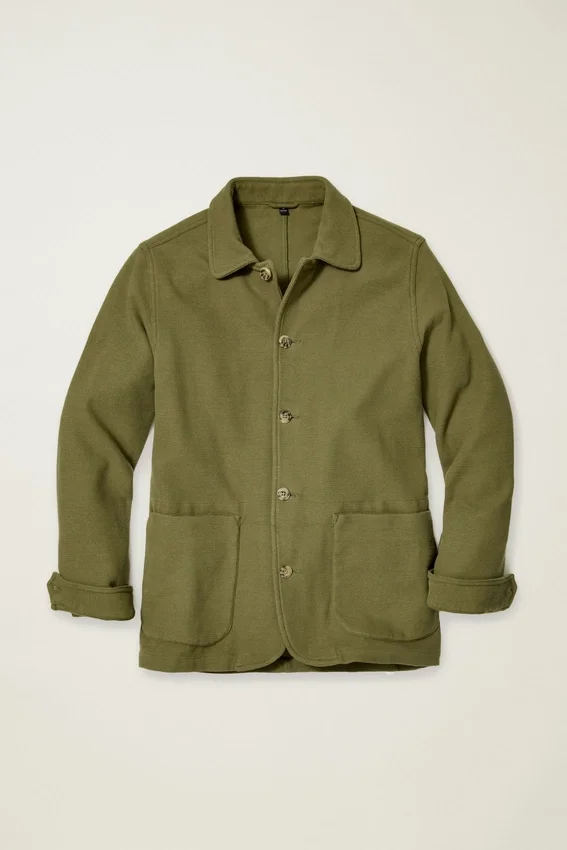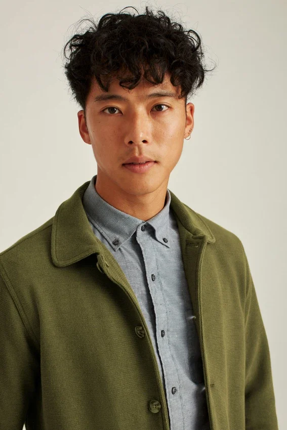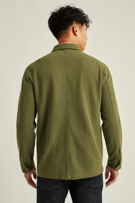 Un capo in maglia elasticizzata da indossare come camicia o giacca. Look classico da lavoro con due tasche frontali.