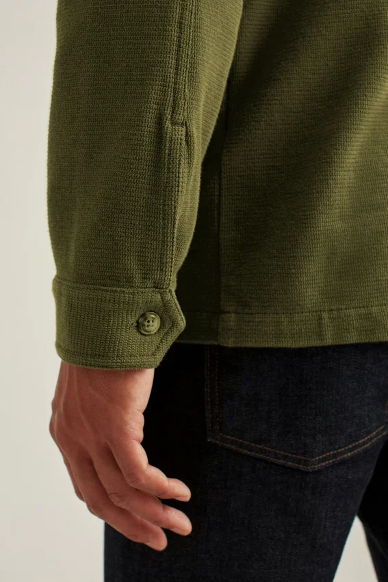 Tasche applicate | Corpo e maniche sfoderati | Passante sul retro del collo | Tessuto a maglia waffle