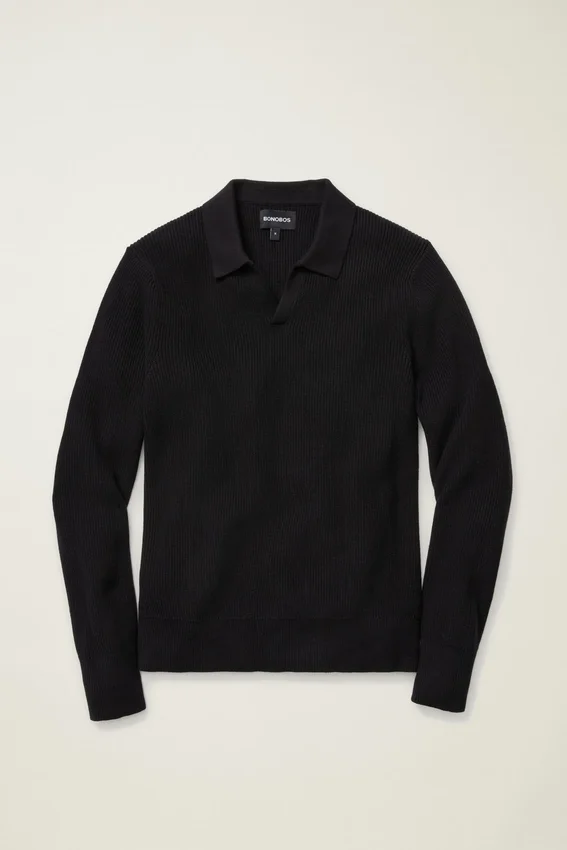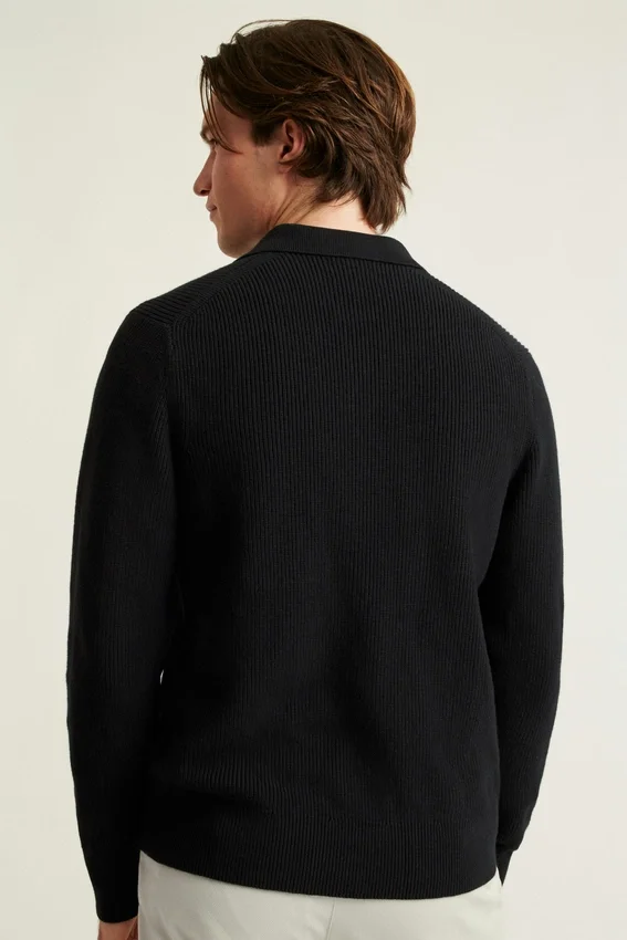 Maglia polo a maniche lunghe in cotone e cashmere