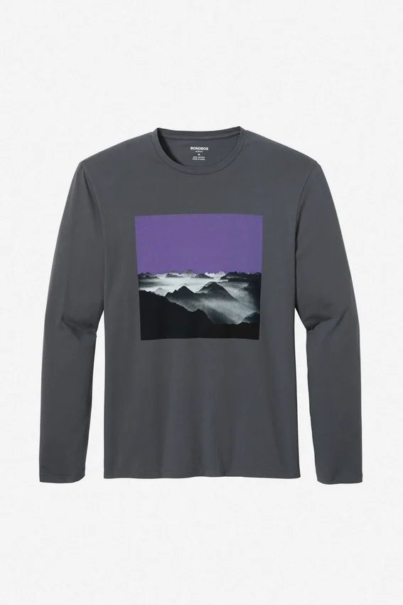 Jersey morbido e confortevole con stampa serigrafica di sciatori sul lato sinistro del petto | Grafica originale