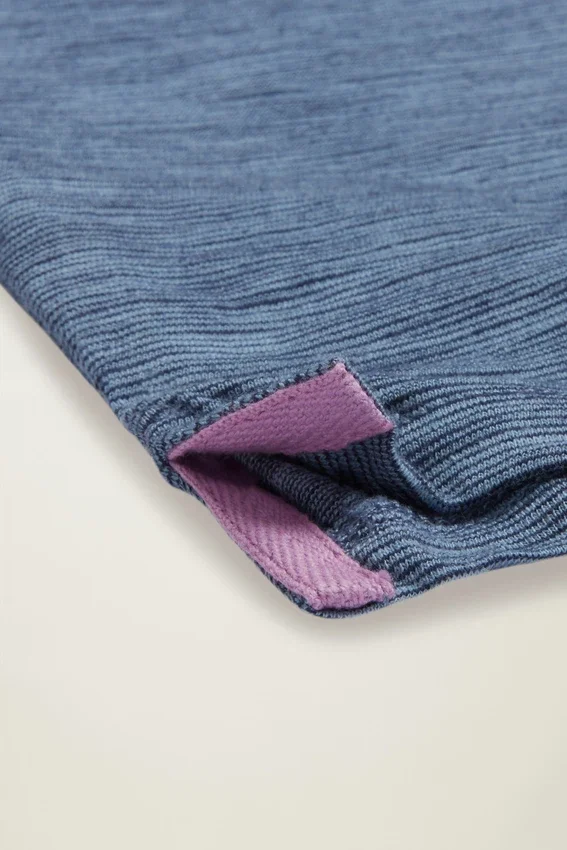 Morbido jersey fiammato con righe sottili per un effetto variegato | Nastro in twill a contrasto su spacco laterale