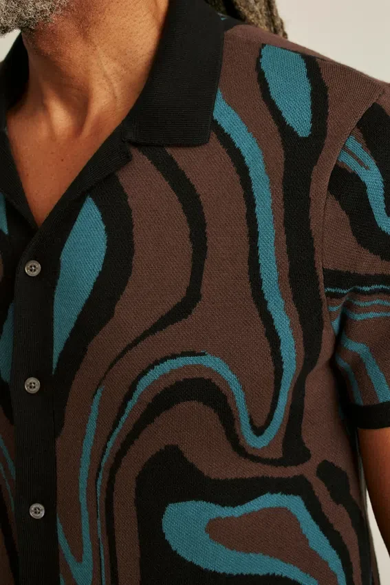 Filato di cotone morbido e traspirante con motivo marmorizzato personalizzato per un look alla moda | Abbottonatura completa