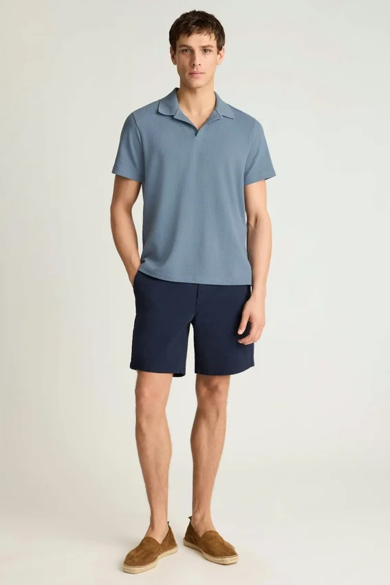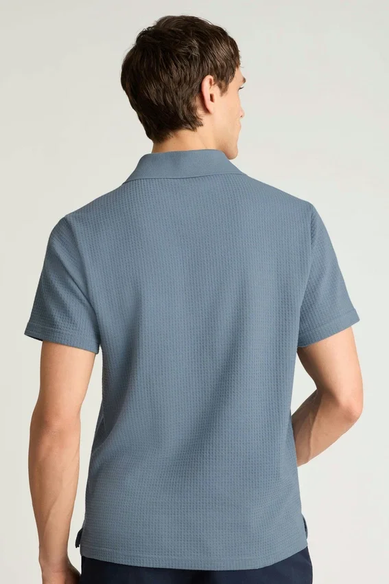 Tessuto a nido d’ape testurizzato con collo Johnny a costine