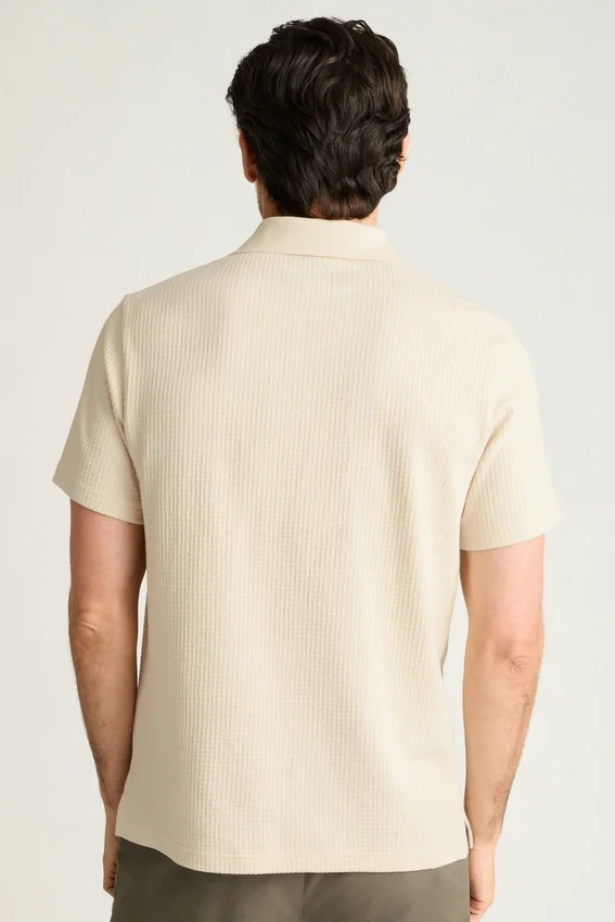 Tessuto a nido d’ape testurizzato con collo Johnny a costine